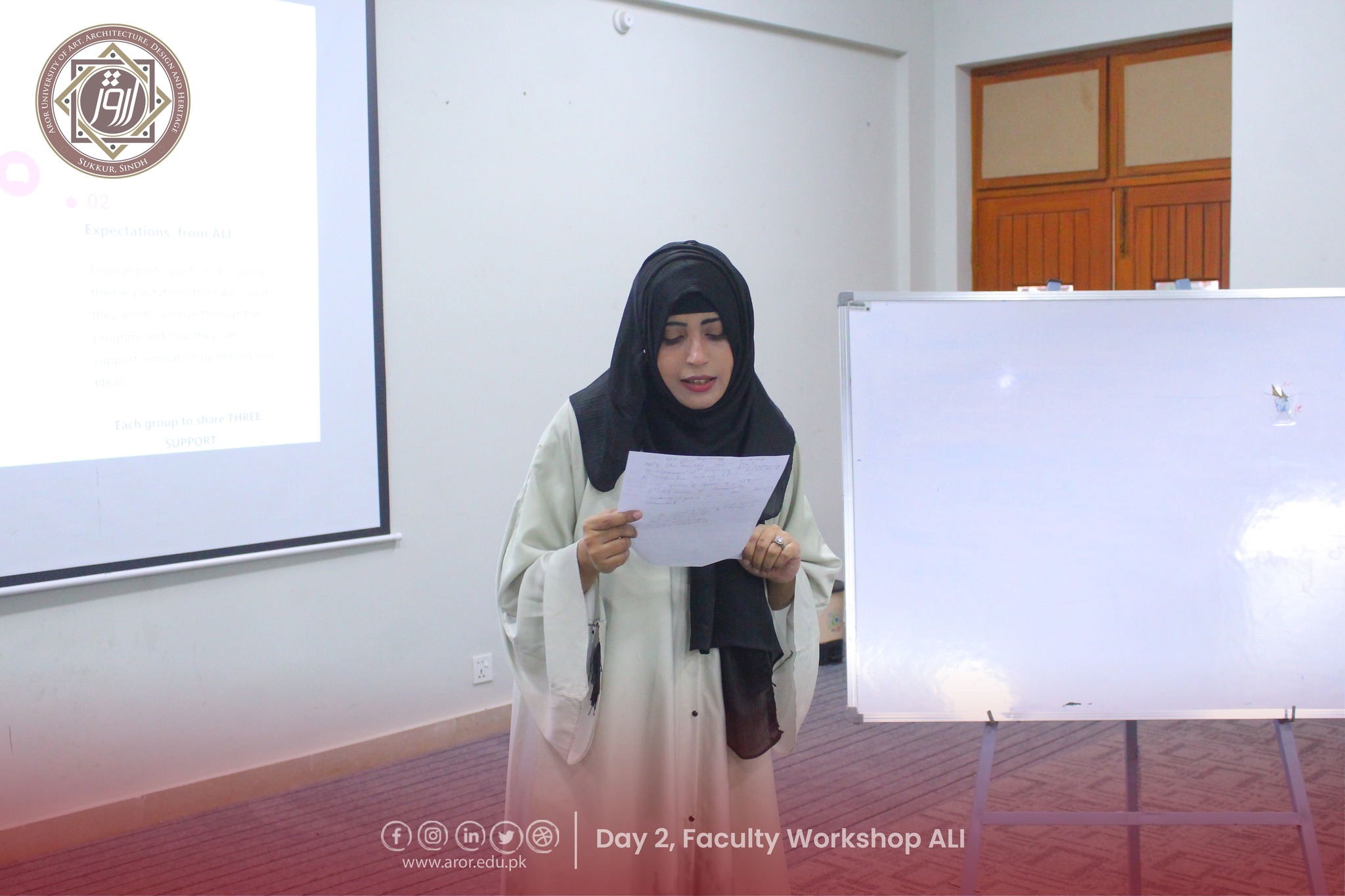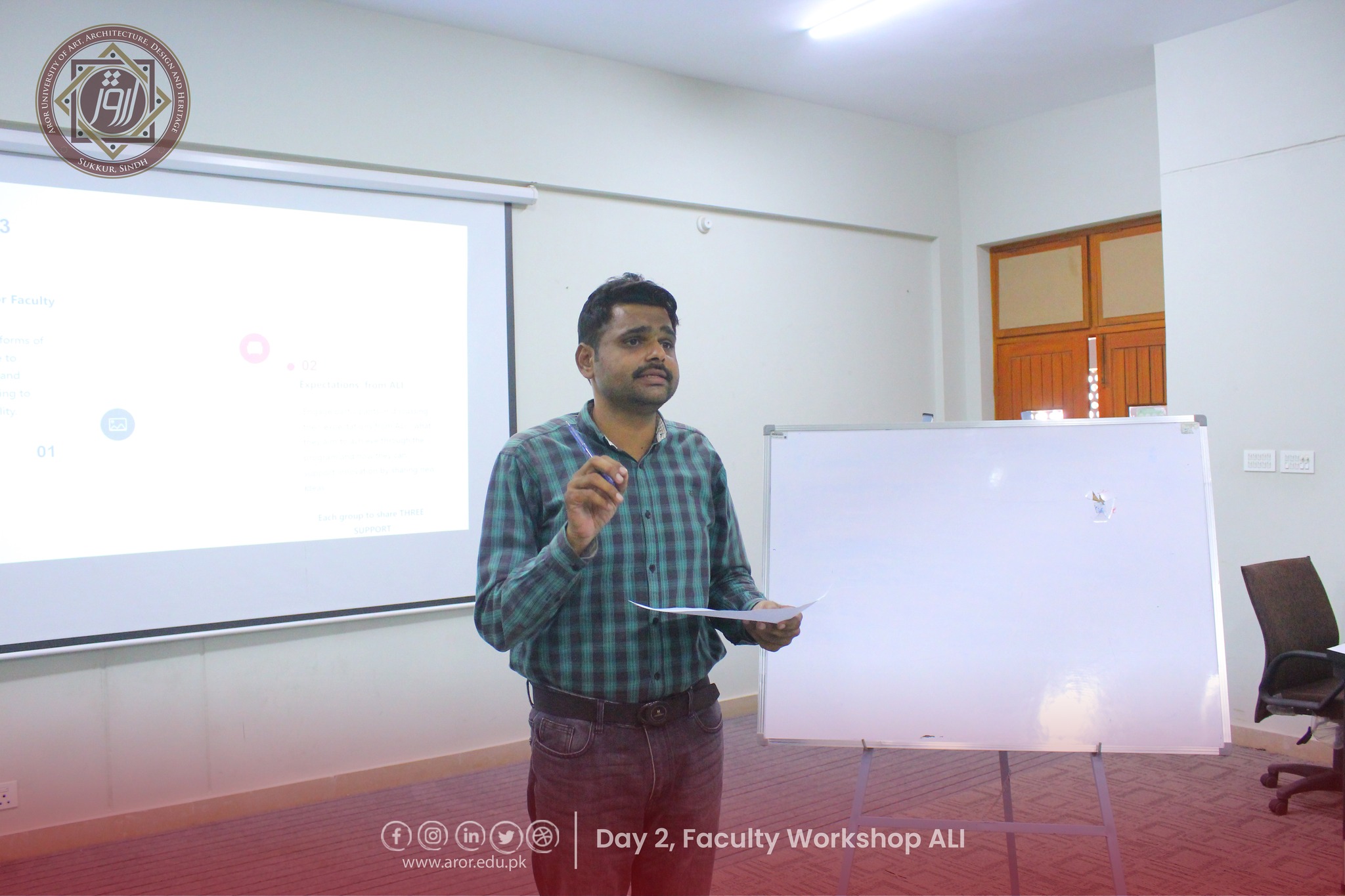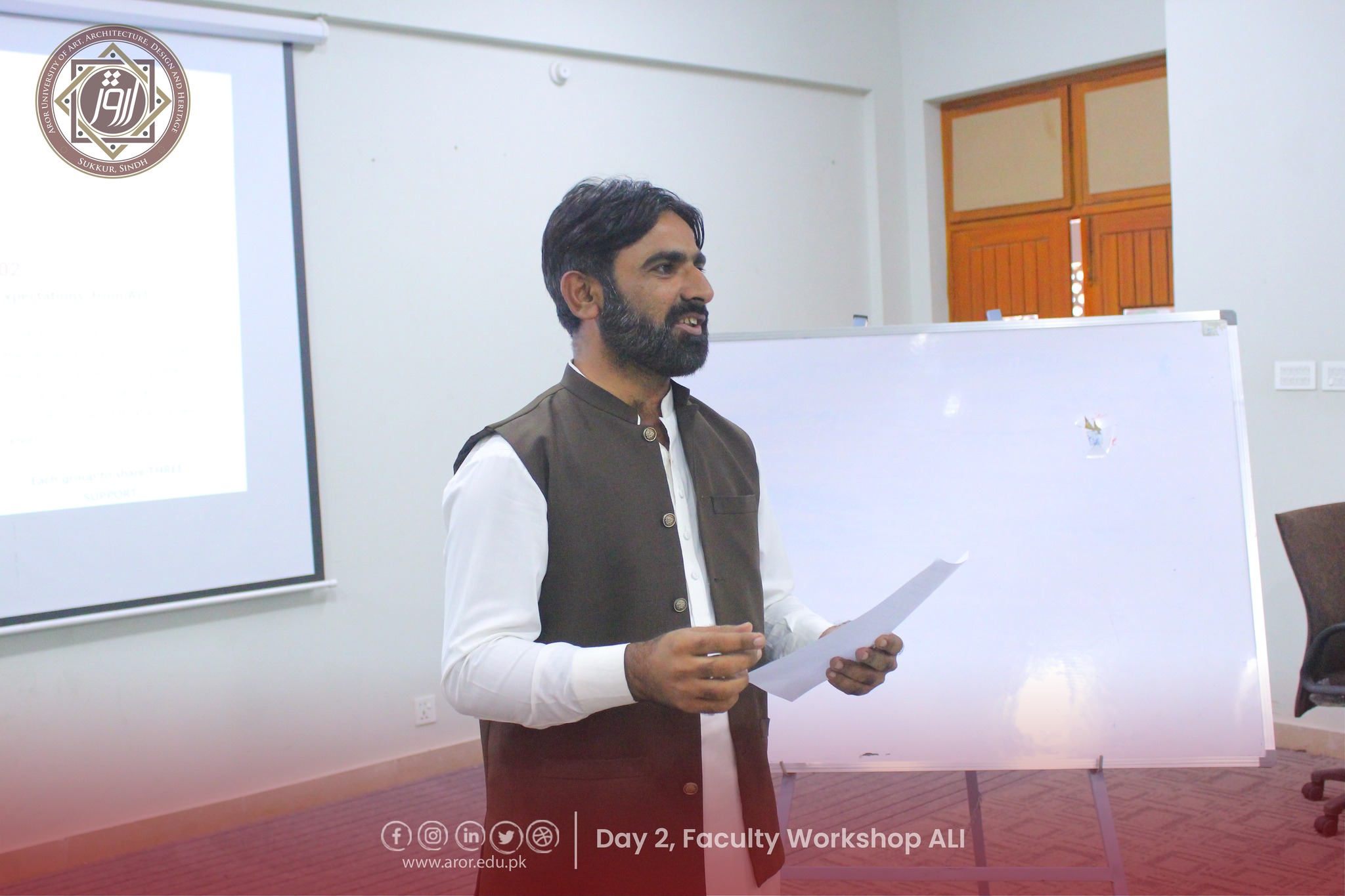 The second day of the Faculty Workshop on Aror Learning Institute (ALI) was full of energy, creativity, and teamwork! Faculty members shared their expectations from ALI with great enthusiasm and came up with amazing, imaginative stories during the interactive activities. The session was led by Director HR, Mr. Shoukat Abbasi, and warmly hosted by Program Coordinator, Ms. Sorath Memon.
