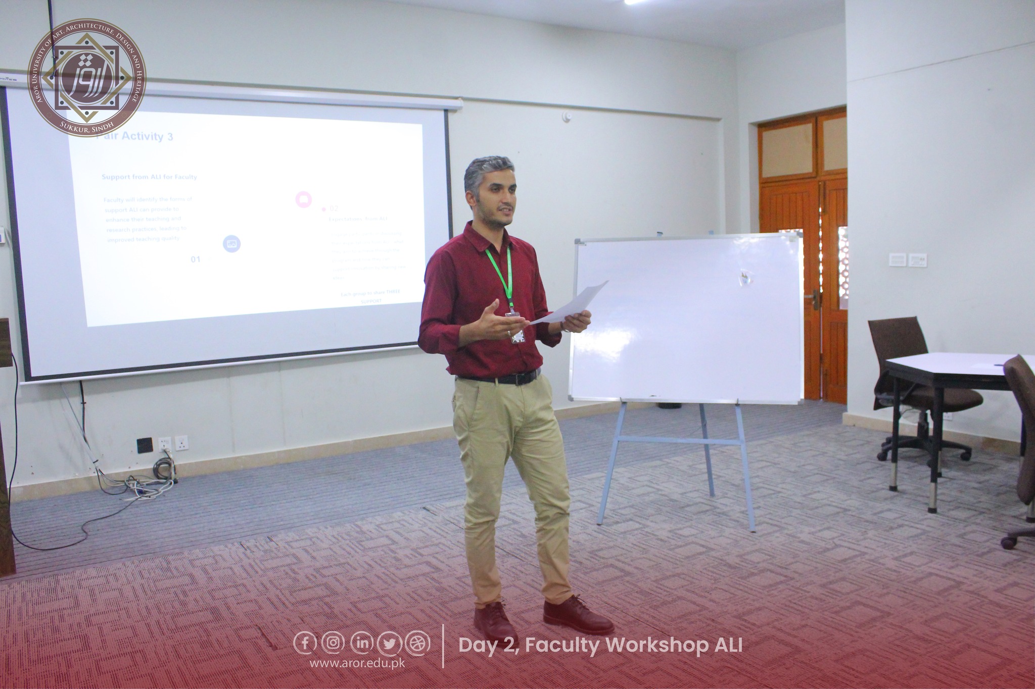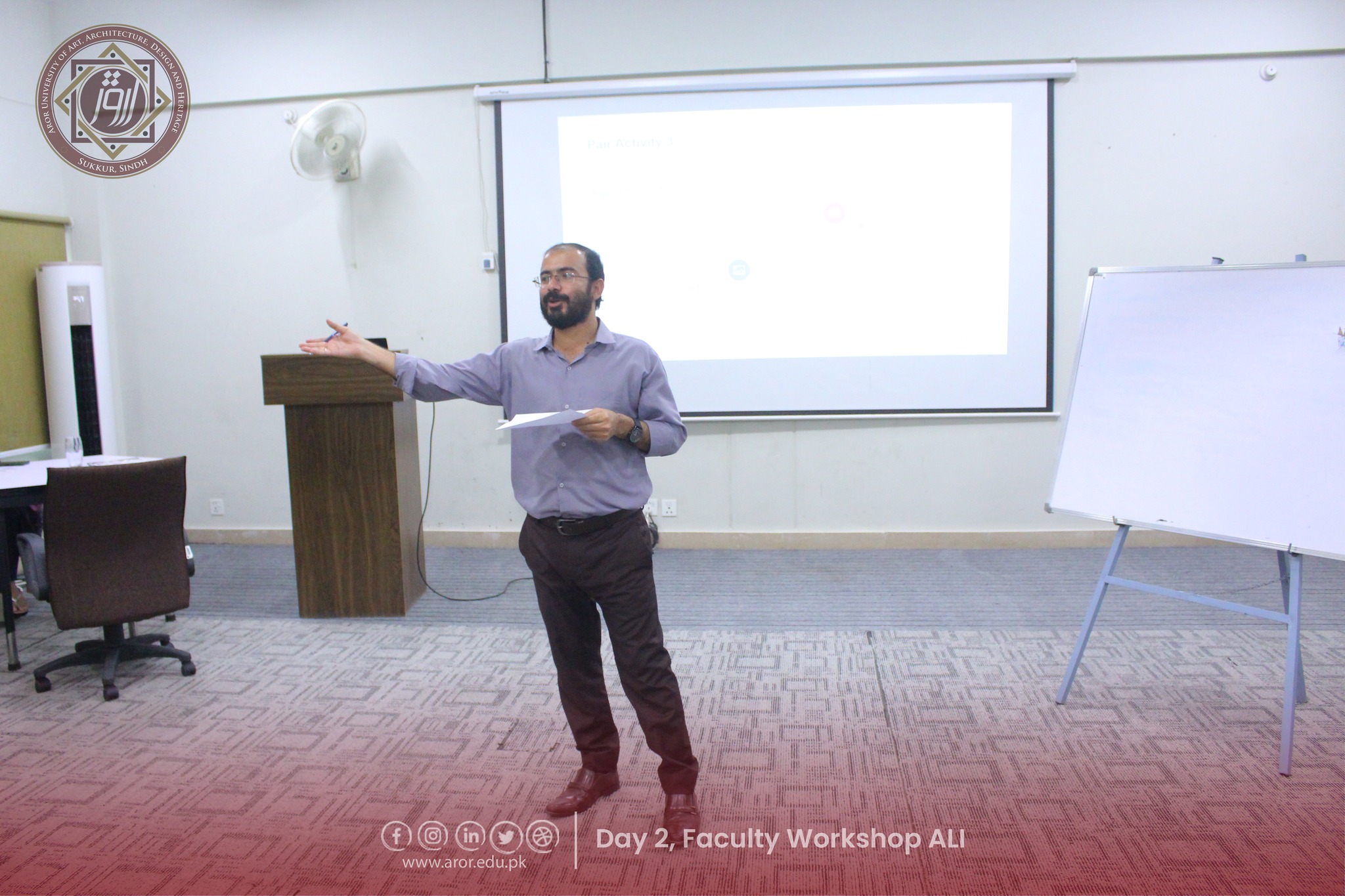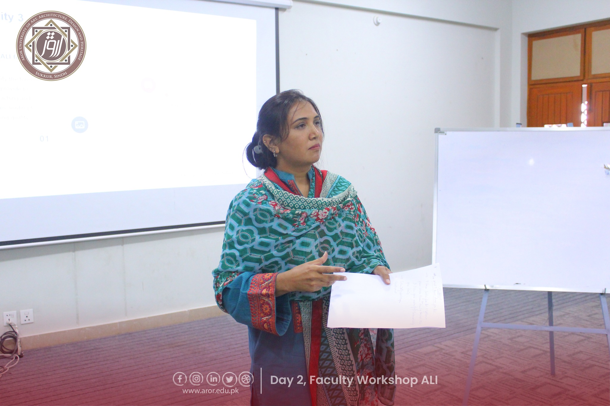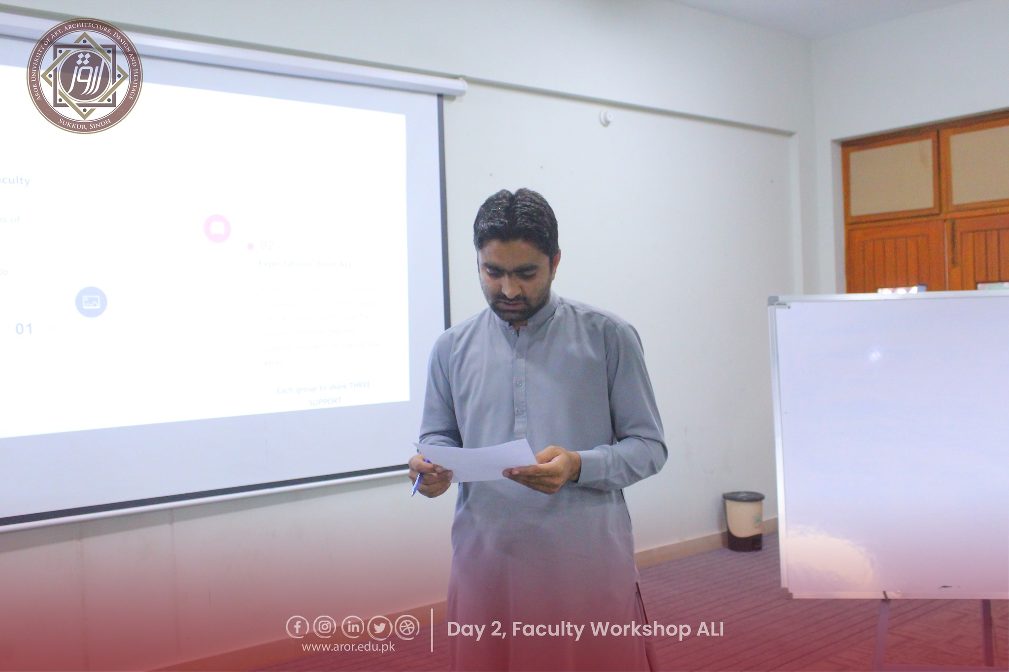 The second day of the Faculty Workshop on Aror Learning Institute (ALI) was full of energy, creativity, and teamwork! Faculty members shared their expectations from ALI with great enthusiasm and came up with amazing, imaginative stories during the interactive activities. The session was led by Director HR, Mr. Shoukat Abbasi, and warmly hosted by Program Coordinator, Ms. Sorath Memon.