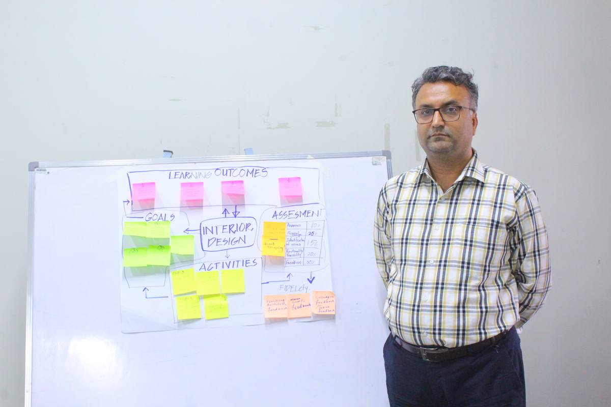 Faculty members engaged in hands-on activities, where they developed and presented their own course outlines. These activities highlighted their creativity, collaboration, and dedication to improving instructional practices.